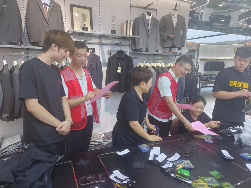 隨后,黨員們深入錢塘衣城各商戶,發(fā)放防汛知識(shí)手冊(cè)。他們結(jié)合“7·20”特大暴雨真實(shí)案例,向商戶現(xiàn)場講解預(yù)警信號(hào)含義、暴雨洪澇危害及自救互救方法,提醒大家務(wù)必增強(qiáng)汛期安全意識(shí),提前做好防范措施。