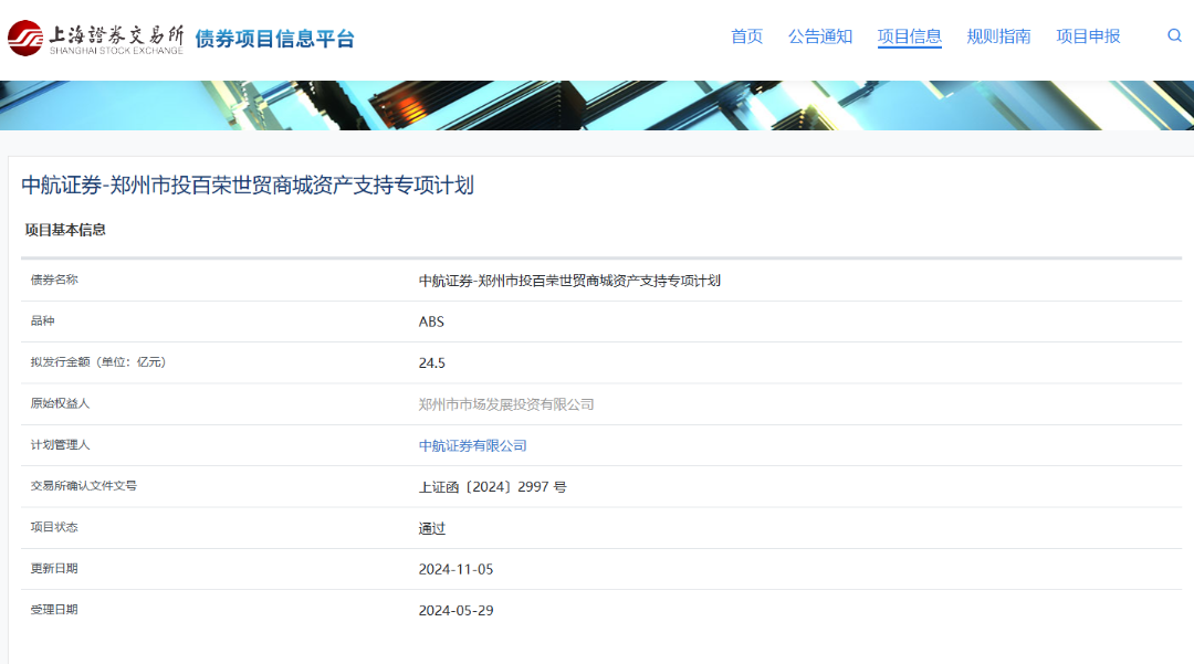 鄭州市投百榮世貿(mào)商城資產(chǎn)支持專項(xiàng)計(jì)劃獲上交所通過(guò)