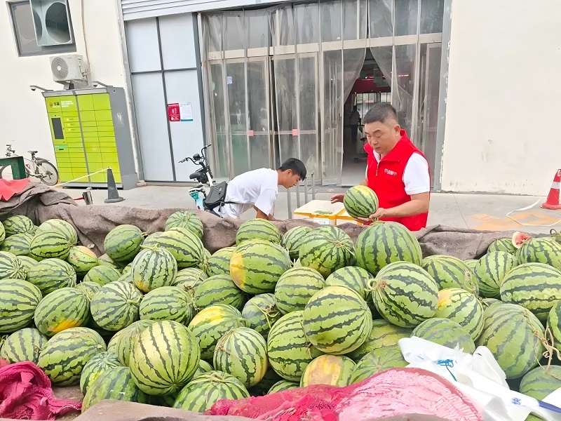 了解到這一情況后,市投集市未來路市場管理人員立即主動上前,與瓜農(nóng)深入溝通,并迅速協(xié)調(diào)安排,將整車2000余斤西瓜轉(zhuǎn)運至市投集市未來路市場內(nèi)避雨銷售。市場不僅免費提供惠農(nóng)攤位,還通過線上線下渠道幫助推廣,號召市民朋友們愛心助農(nóng)。