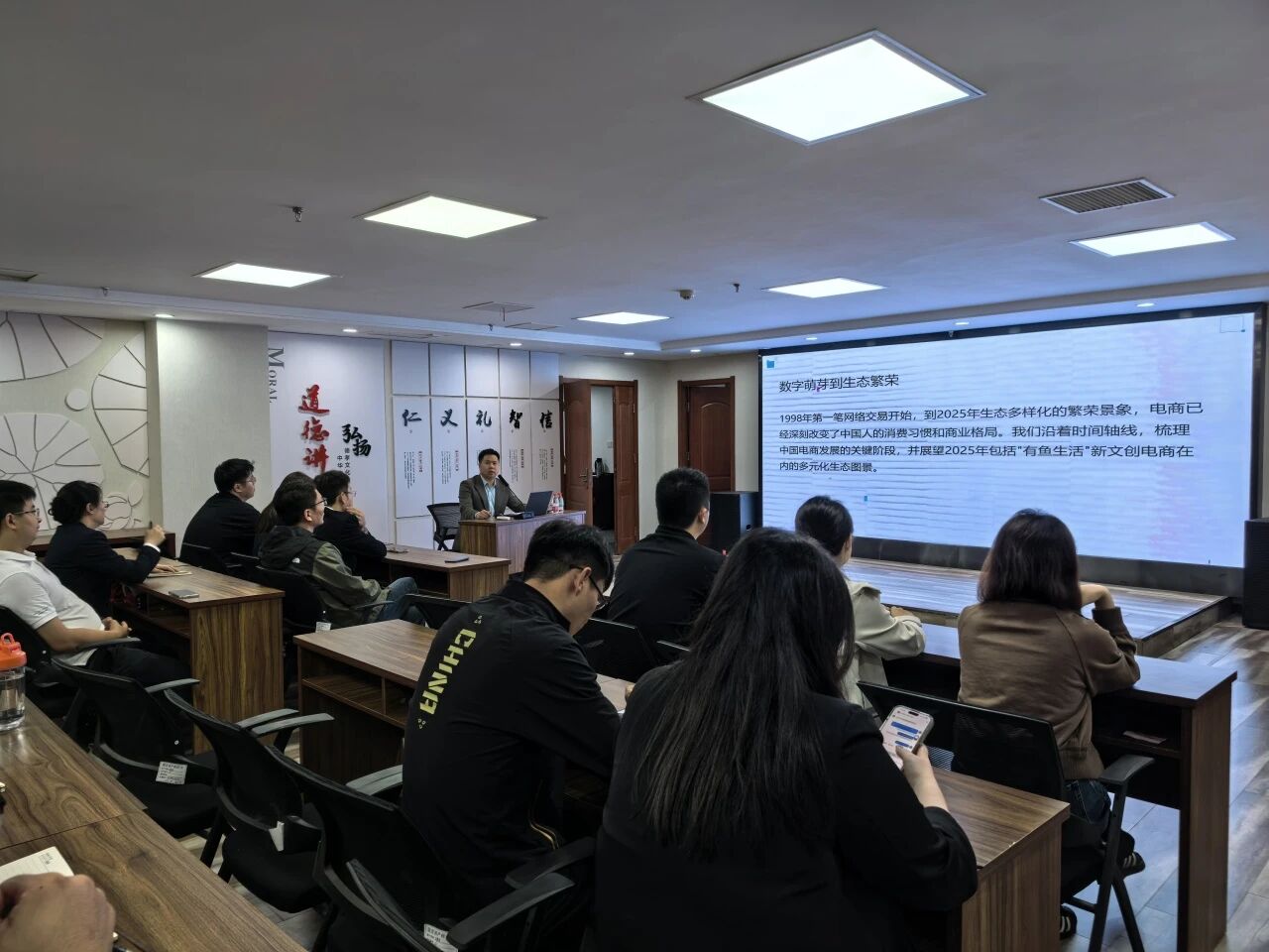 培訓(xùn)伊始,周浩圍繞國(guó)內(nèi)電商發(fā)展脈絡(luò),清晰梳理了行業(yè)從“規(guī)模擴(kuò)張”到“質(zhì)量創(chuàng)新”的演進(jìn)邏輯,并解讀了《電子商務(wù)法》實(shí)施等監(jiān)管政策帶來的行業(yè)影響。隨后,結(jié)合淘寶、京東、拼多多等典型案例,剖析綜合電商、垂直電商、直播電商等不同業(yè)態(tài)的運(yùn)營(yíng)特點(diǎn),重點(diǎn)介紹了以“有魚生活”為代表的新文創(chuàng)電商融合文化IP與VR技術(shù)的創(chuàng)新模式和“跨境四小龍”(速賣通、SHEIN、TikTok、Temu)的發(fā)展優(yōu)勢(shì),分析了海外倉(cāng)為主流的物流體系現(xiàn)狀。