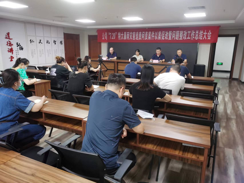 ? ? 8月19日,鄭州市市場發(fā)展投資有限公司召開“7·20”特大暴雨災害追責問責案件以案促改暨問題整改工作總結大會,教育引導廣大黨員干部更好地把思想和行動統(tǒng)一到習近平總書記重要講話和指示精神上來,切實把教訓變教材、把教材變方案、把方案變行動,推動中央、省委、市委各項整改要求件件落實、條條落地、事事見效。公司領導趙潔、龐曉冰、孫濤、逯衛(wèi)川出席,公司本部全體人員、各子公司人員參加會議。